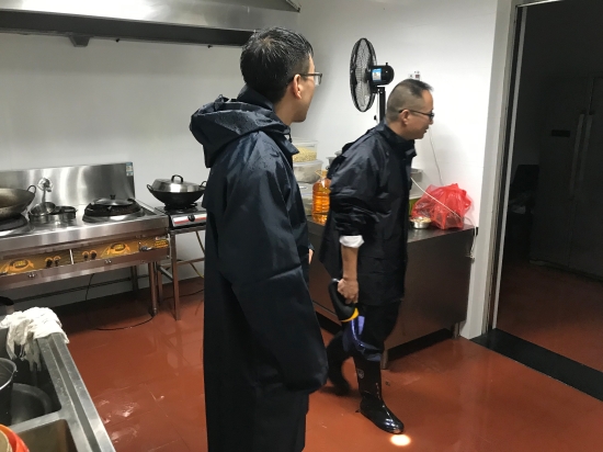 凌晨2點(diǎn)10分,水位猛漲至70厘米,考慮到人員安全,孫明偉立即組織人員叫醒在寢室休息的員工,短短5分鐘內(nèi),將大家全部安全撤離到辦公樓。行政人員紛紛將寢室讓給第二天早上上崗的同事,自己卻整宿未睡,時(shí)刻關(guān)注水位上漲情況,直到天亮潮水退下,大家才在自己辦公室凳子上、會(huì)議室椅子上稍作休息。